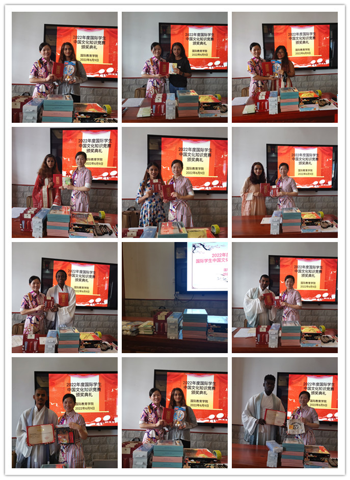 2022年6月7日下午4:00-5:30,太阳集团tyc5997在1-614教室成功举办了“太阳集团tyc59972022年度中国文化知识竞赛”,在校的十余名国际学生参与了此次比赛。经过一个半小时的角逐,多位国际学生分别获得一等奖一名、二等奖两名、三等奖三名以及优秀奖若干。太阳集团tyc5997国际汉语教研室负责人侯萌老师为获奖选手颁发了荣誉证书和奖品,并且鼓励国际学生在中国要多听多学,多说多问,更多地了解中国的传统文化。