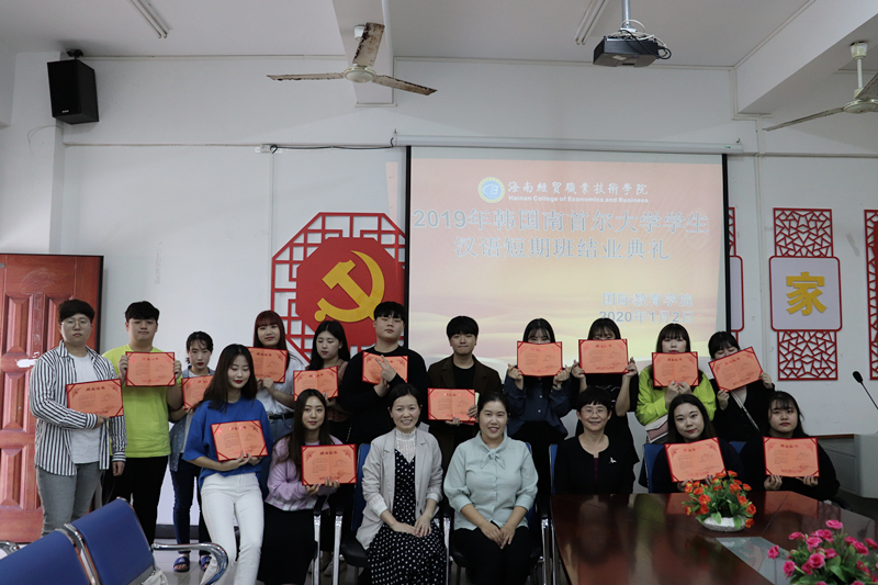 三周的学习结束后,2020年1月2日,太阳集团tyc5997为此次汉语短期研修班的韩国学生举行了结业典礼,张春玲院长为大家颁发了结业证书,祝贺大家顺利结业,并鼓励大家多多努力学习汉语,日后继续再中国深造学习,留在中国发展,尤其鼓励大家日后来海南,为海南自由贸易区建设贡献自己的力量。张院长的鼓励也得到了韩国学生的一致认可,更有部分韩国学生通过此次研修加深了对汉语和中华文化的热爱,也爱上了海南和海经贸,有的同学萌生了回国考取韩语教师资格证,日后争取再来海经贸工作的想法,张院长也对此表示鼓励和欢迎。