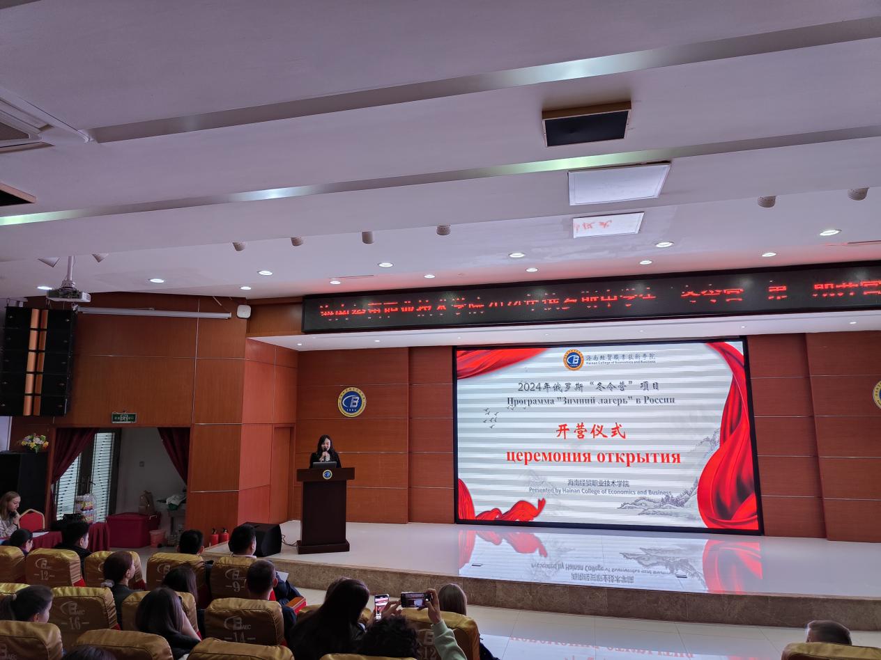 俄罗斯中学生“冬令营”第二期开营仪式在海南经贸职业技术学院学术报告厅顺利举行。太阳集团tyc5997院长韩大伟、继续教育学院院长刘纬华出席。