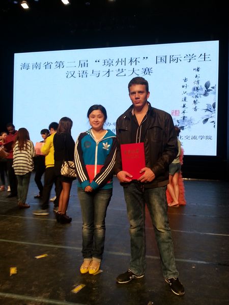 128讯(国际学院韩笑报道)127,我院国际学院留学生在由省教育厅主办、海南大学承办的海南省第二届琼州杯国际学生汉语与才艺大赛上获得了三等奖。目前在我院国际学院留学的哈萨克斯坦留学生大心在形象展示与中文自我介绍、语言展示、中华才艺表演、本国文化展示四个环节的比赛中表现优异,为学院争得了荣誉。