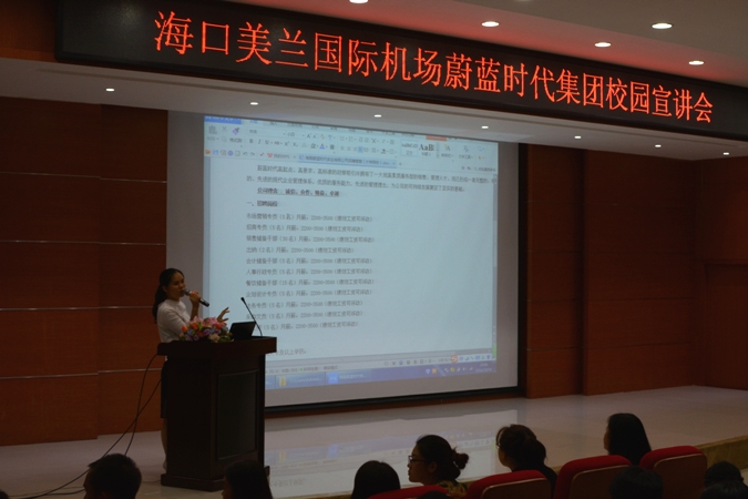 陈总现场向同学们介绍了该公司的一些基本情况,并详细介绍了此次招聘岗位的一些工作要求,鼓励同学们积极加入蔚蓝集团。随后陈总还针对各个专业提出不同任职职位的建议,对于同学们比较关注的工资待遇方面的问题也进行了详细的说明。